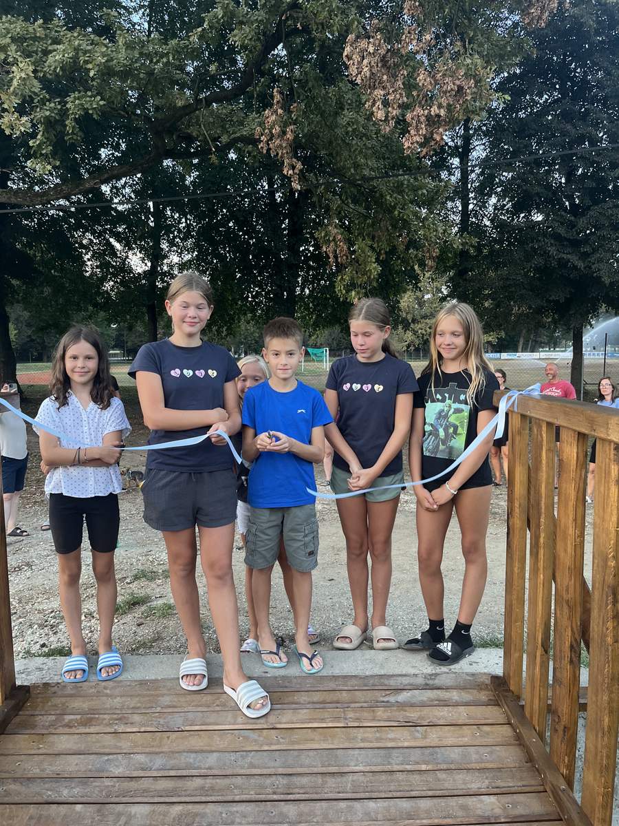 Ob številčni prisotnosti so najmlajši iz ulice simbolično prerezali trak, sledila je zdravica, naj bo most trden in naj služi dolgo let svojemu namenu, potem je sledilo prijetno druženje.