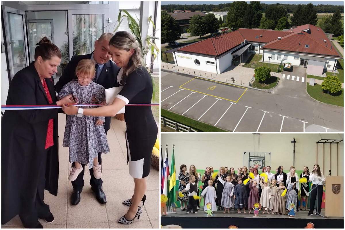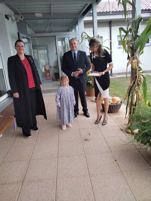 Pri prerezu traku so sodelovali župan Branko Slavinec, ravnateljica ga. Vasilija Stolnik, pomočnica ravnateljice Renata Slavinec Berden in Nadija Novak, ki je zastopala otroke in zaposlene vrtca.