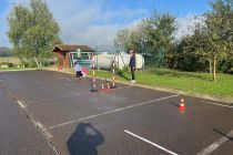 V sredo smo na parkirišču vrtca postavili poligon, ki je bil zasnovan v skladu z merili Javne agencije Republike Slovenije za varnost v cestnem prometu. Učenci so potrebovali precej vaje, da so uspešno opravili ta del izpita.