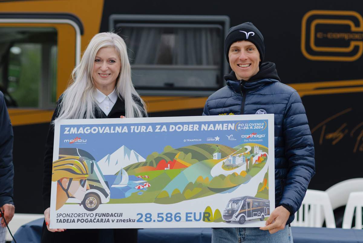 Direktorica podjetja Sandra Županec je Tadeju osebno predala simbolni bon: "V imenu celotne ekipe podjetja Carthago, z iskreno zavezanostjo k dobremu delu, danes predajamo donacijo v višini 28.586 € Fundaciji Tadeja Pogačarja, ki jih je podjetje Carthago zbralo preko dobrodelne kampanje »ZMAGOVALNA TURA ZA DOBER NAMEN S CARTHAGOM, TADEJEM POGAČARJEM in HITRADIOM CENTER«. Ta sredstva so namenjena programu pomoči bolnikom, ki trpijo zaradi raka ali za nakup opreme za zdravljenje rakavih bolnikov. Donacija Carthaga naj pomaga širiti naše poslanstvo ter tako olajša pot zdravljenja marsikateremu bolniku."