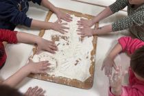 V tem popoldnevu so nas vabile okrogle oblike, zato smo se sladkali z luninimi palačinkami in končno je napočil čas, ko je zunaj postala tema. Z daljnogledom in teleskopi smo se kot pravi lunini raziskovalci odpravili na delo. Naš večerni pohod ni skrival malo razočaranja, saj naša polna luna ni bila vidna, kar je zakuhal vremenski preobrat na ta dan, ko je čez dan malo snežilo in je bilo zvečer oblačno. Ugotovili smo, da je luna skrita za oblaki ali pa da jo je bolel modrostni zob, kot v pesmici in je zemlja ostala v temi.