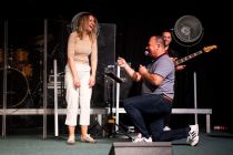 Publika je lahko videla presenečenje, ko je eden izmed obiskovalcev na odru šel na kolena ter zaprosil svojo drago.