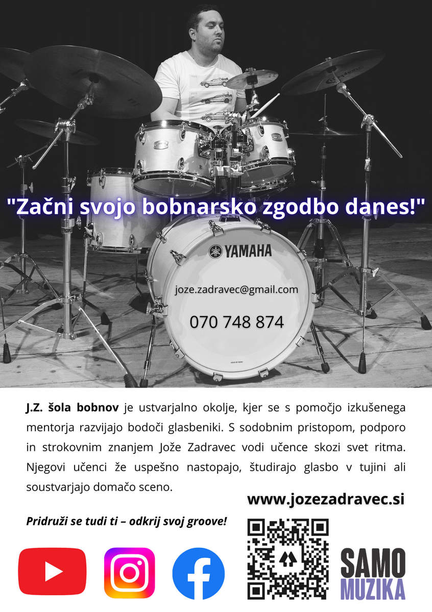 J.Z. šola bobnov je odprta za nove učence. Dobrodošli so vsi – od začetnikov, ki želijo spoznati osnove ritma, do naprednih bobnarjev, ki iščejo mentorja za razvoj lastnega izraza.