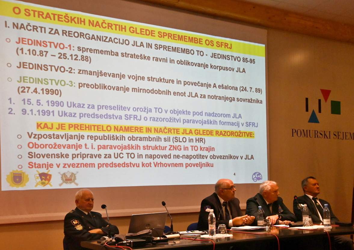 O tem pomembnem in v marsičem prelomnem obdobju slovenske zgodovine je na dogodku spregovorilo osem panelistov v dveh omizjih. Predstavili so referate in osebna pričevanja o nalogah obrambnih in varnostnih sil v Pomurju pri pripravah na odločen odpor proti morebitnemu agresorju v poletnih in jesenskih mesecih leta 1990. Tretje omizje je bilo namenjeno predstavitvi pogledov zvez domoljubnih in veteranskih organizacij na državni ravni ter razpravi.