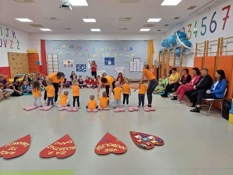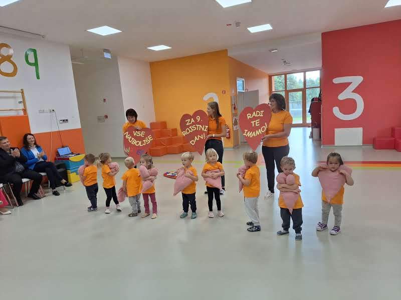 Ob tem se zahvaljujejo občini ustanoviteljici za fizični prostor, ki so ga pred devetimi leti začeli polniti z otroškim smehom. HVALA otrokom, da s svojo igrivostjo polnite fizičen prostor. HVALA staršem, da jim dan za dnem zaupate otroke in HVALA strokovnim, administrativnim, tehničnim delavcem, da z ljubeznijo, strokovnostjo in vzgledom opravljate svojo poslanstvo.