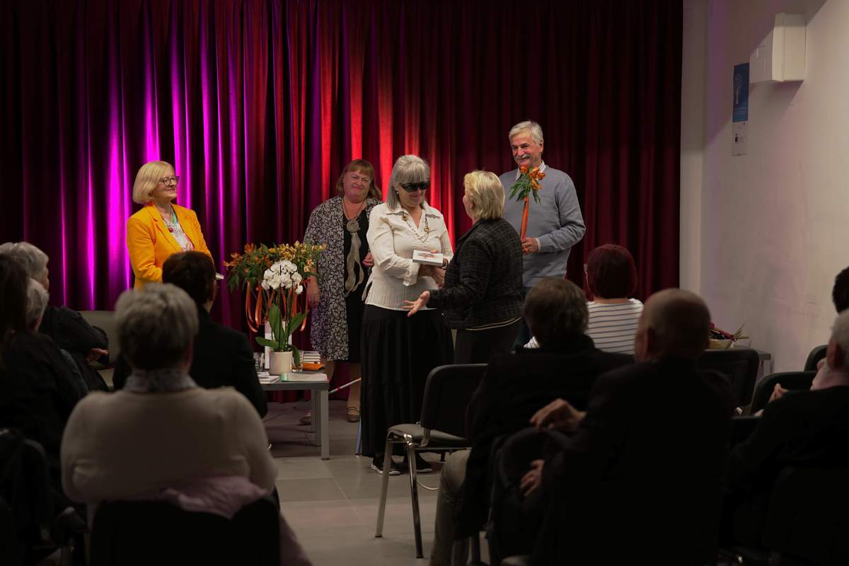 Čeprav ga. Majda ne vidi, vidi in opazi, kar drugi ne. Njene pesmi so res kot mavrica, ki nas razveseli po neurju, po nevihti ali viharju.