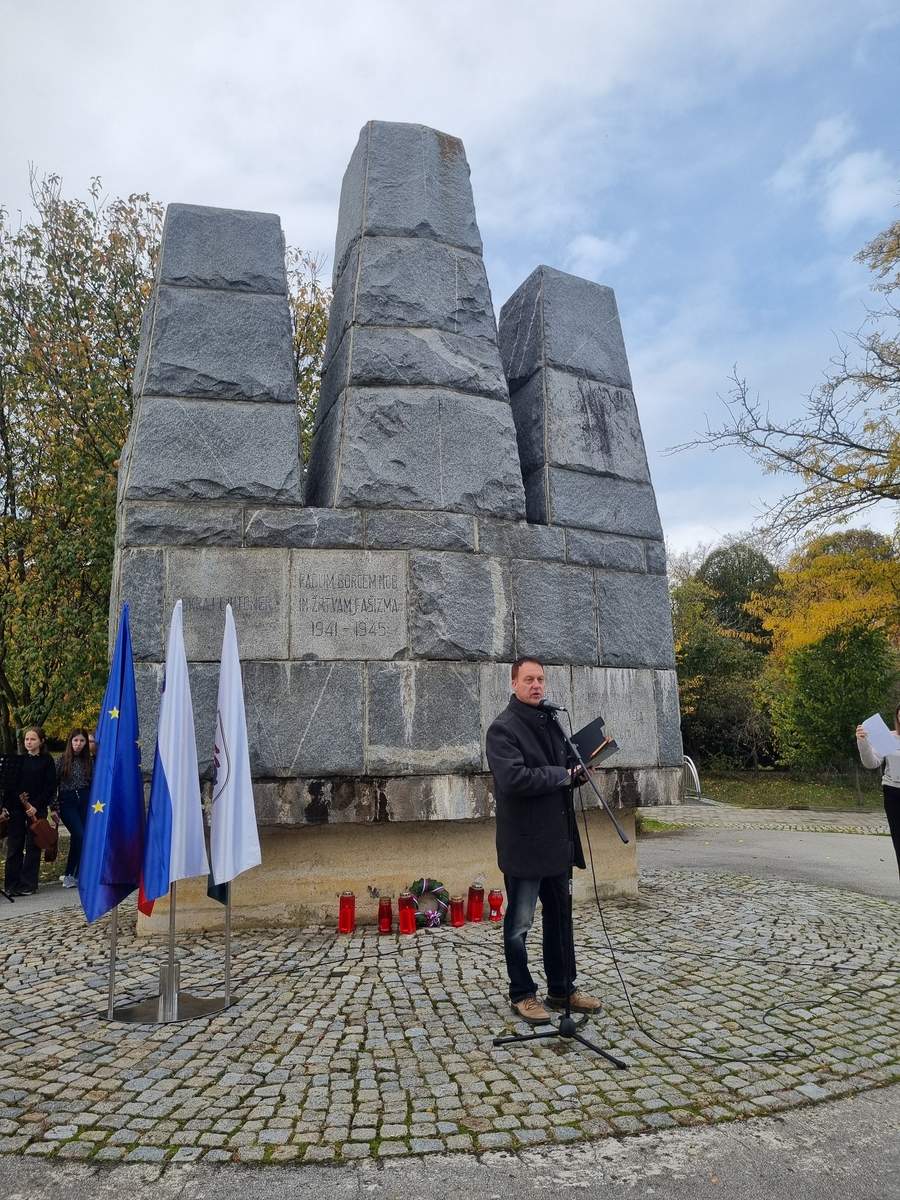 Zbrane je nagovoril predsednik Združenja borcev za vrednote NOB Ljutomer Jani Prajner, ki je skupaj z ljutomerskim podžupanom Jankom Špindlerjem in majorjem Antonom Kosijem položil venec in prižgal svečo.
