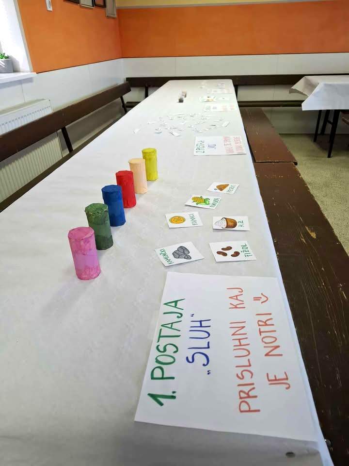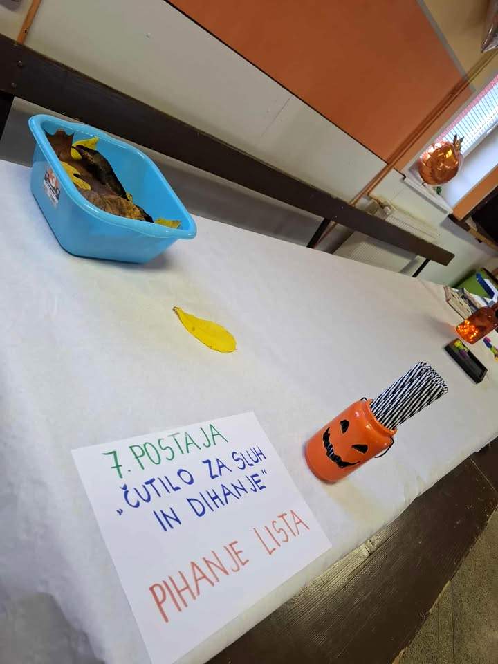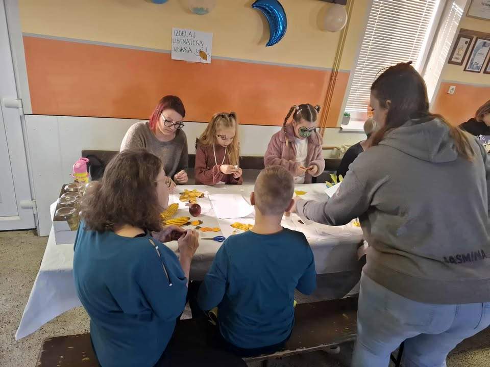 Dogodek je bil poln raznolikih dejavnosti, ki so otroke spodbudile k raziskovanju sveta na igriv in vključujoč način. Otroci so se prepustili ustvarjanju, kjer so iz listja izdelali čudovite jesenske junake in okrasili kozarce za jesenske lučke, ki so pozneje zasijale na večernem pohodu. Na senzorni poti so se srečali z različnimi izzivi: tipali so jesenske predmete, prepoznavali vonje cimeta, klinčkov in kave, okušali sladke, slane in kisle okuse, poslušali šelestenje listja, pihali liste s slamico ter prenašali kostanje na žlici. Vsaka naloga je bila skrbno zasnovana, da je spodbujala čutno zaznavo, umirjanje in socialno povezanost.