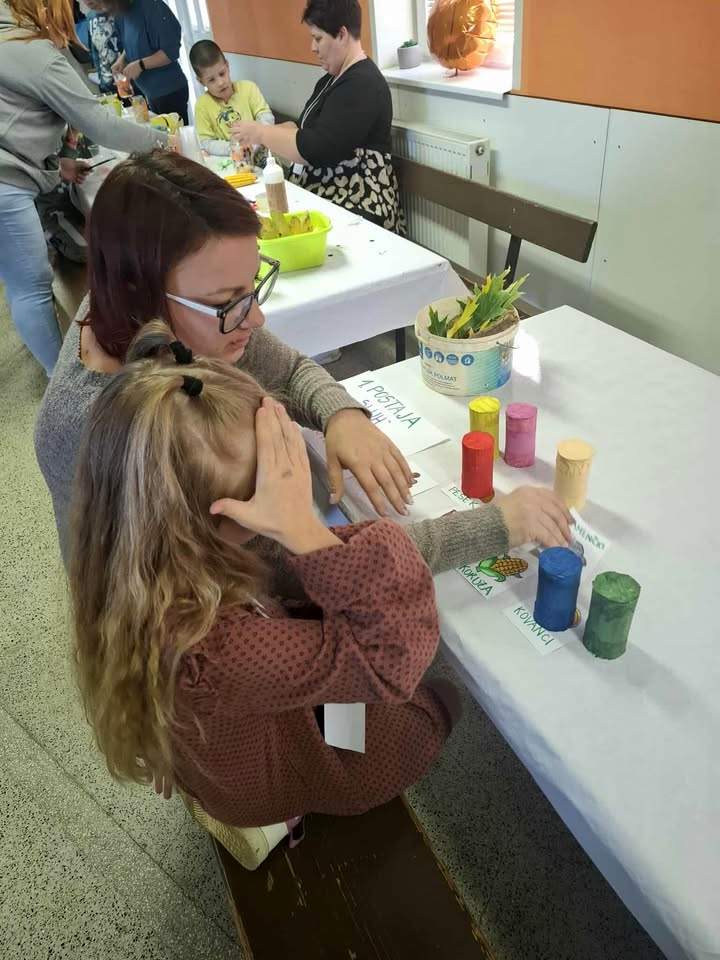 Ves čas delavnice je bila na voljo tudi poslikava obraza, ki je še dodatno razveselila otroke. Vrhunec dogodka je bil zaključek senzorne poti, kjer so otroci z nasmehom do ušes odklenili poseben zaklad, ki je nagradil njihovo radovednost in vztrajnost.