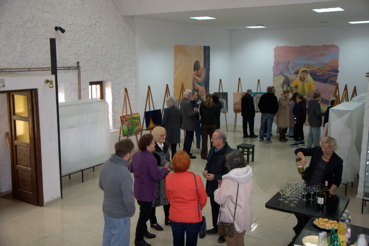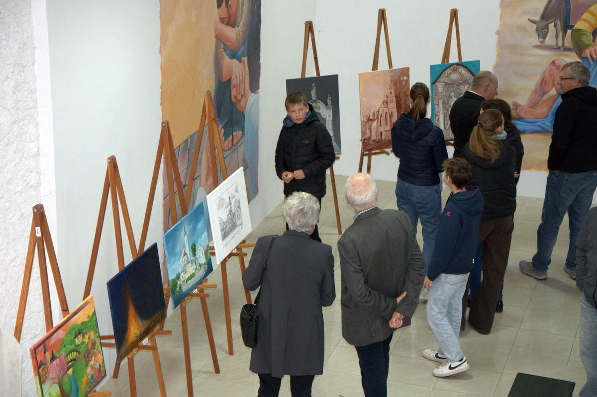Odprtja razstave so se udeležili tudi trije likovniki, od katerih eden prihaja iz Občine Križevci, in se na koncu fotografirali ob svojih stvaritvah.