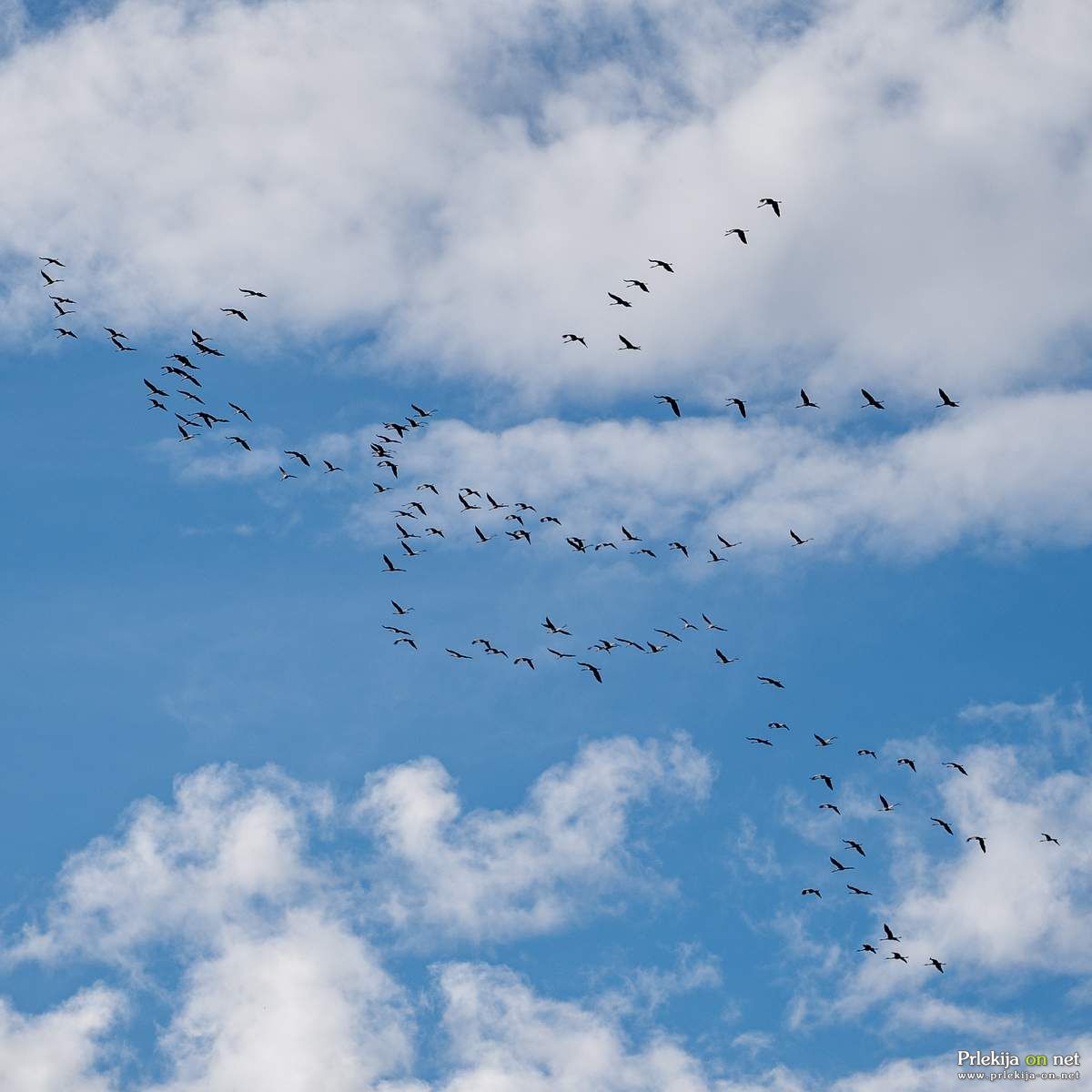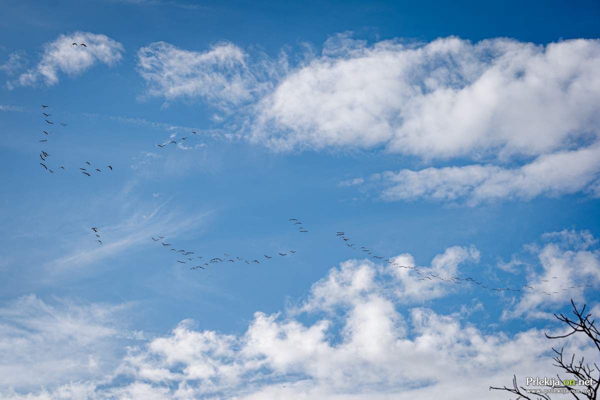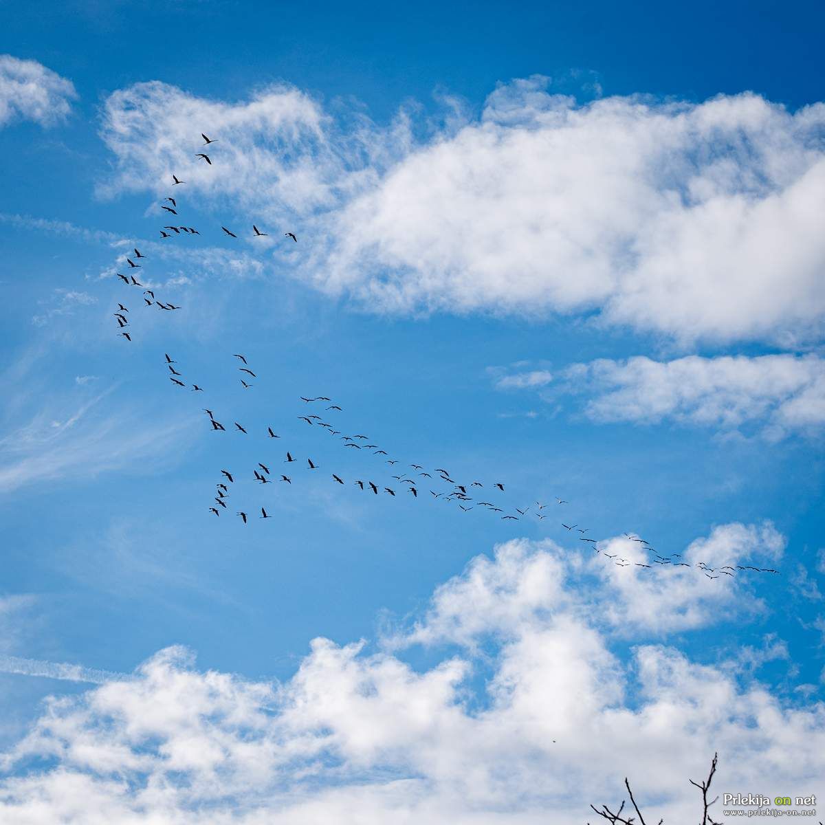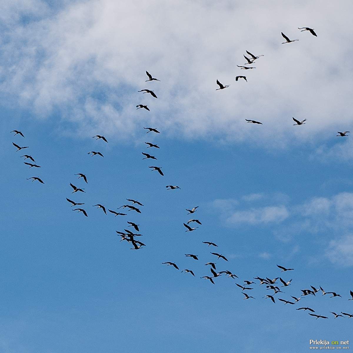 Jeseni lahko tudi pri nas opazujemo številne ptice, ki se selijo v toplejše kraje. Ene izmed teh so žerjavi, katere ponavadi tudi veliko prej slišimo, kot vidimo, saj so zelo glasni. Te velike jate in njihovo selitev lahko pri nas opazujemo od oktobra in v prihodnjih mesecih. Ena izmed takšnih jat je bila na našem nebu vidna v nedeljo, 2. novembra, okoli 12. ure, ko je jata preletela Prekmurje in Prlekijo.