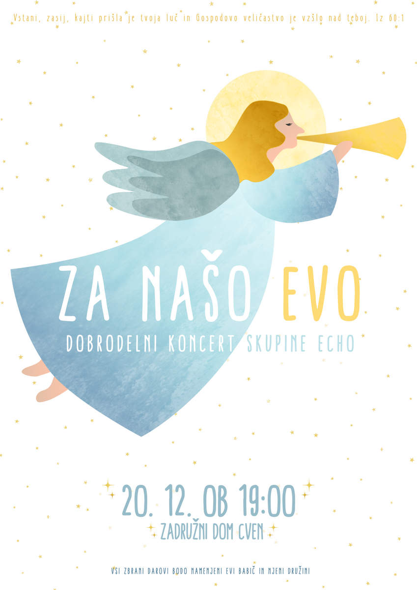 Na Cven prihaja tudi vokalna skupina Echo, ki pripravlja dobrodelni koncert »Za našo Evo«. Eva je namreč članica skupine. Koncert bo v soboto, 20. decembra, ob 19. uri v zadružnem domu na Cvenu.
