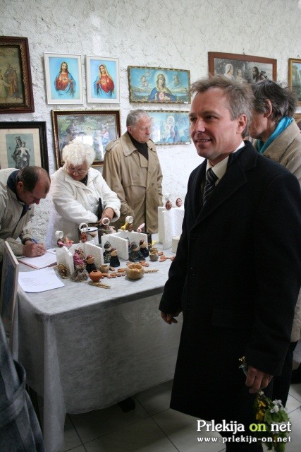 Na stenah prostora visijo slike sv. podob, ki so jih za razstavo