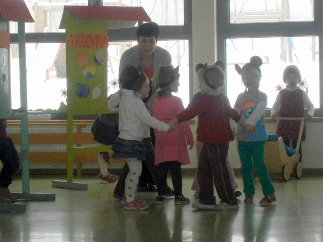 ter pesmijo Tri majhne račke, pod vodstvom vzgojiteljic