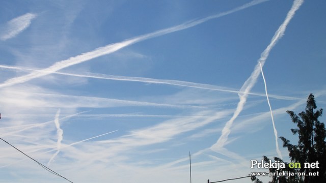 Če ste se v nedeljo, 13. oktobra dopoldan, ozrli v nebo, ste lahko zagledali "mrežo" belih črt, ki jih za sabo puščajo letala.