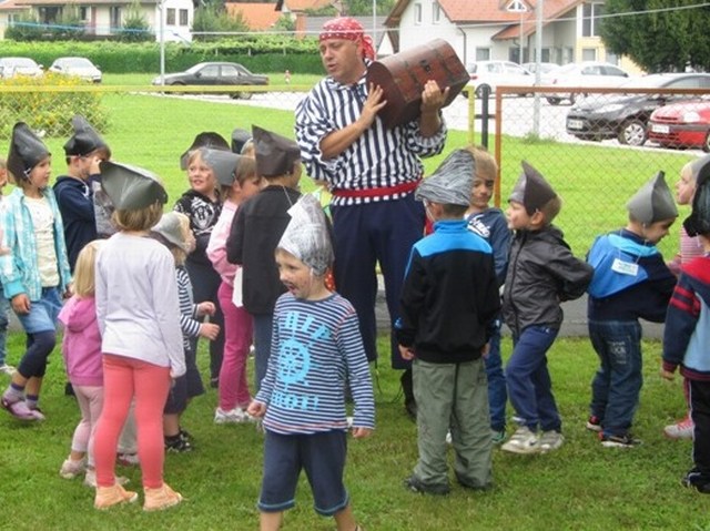 Otroci so si naredili gusarske klobuke, pokrivala, nakit, se naučili gusarsko pesem in nekaj plesov
