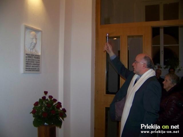 obeležjem dr. Ernestu Frumnu v čast in v zahvalo pri obnovi Marijanišča v