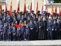 končani sveti maši so se gasilci zbrali na župnijskem dvorišču na