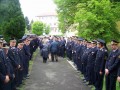 pred cerkvijo naredili špalir, skozi katerega so šli gasilski prapori,