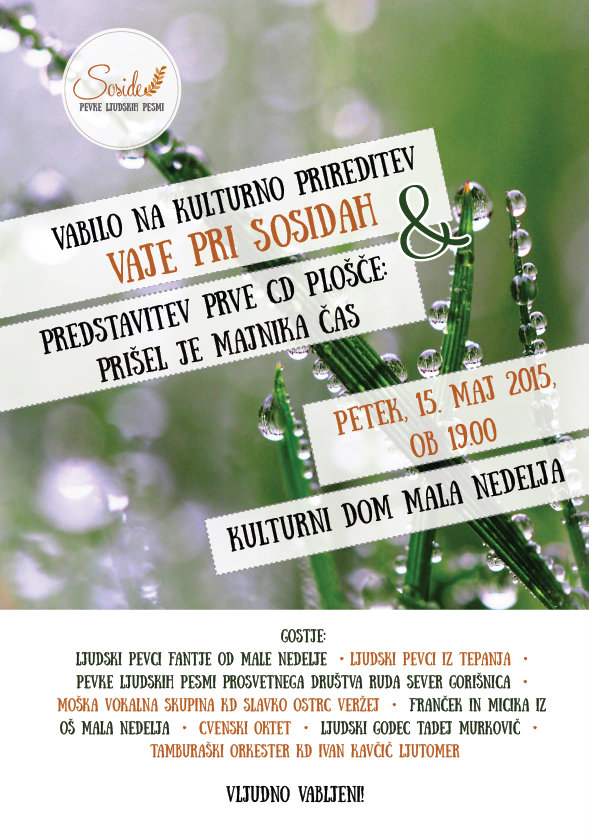predstavile na prireditvi "Vaje pri sosidah" v petek, 15. maja ob 19.