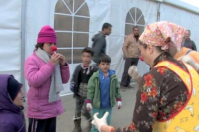 Rdeči noski polepšali dan otrokom v šentiljskem nastanitvenem centru
