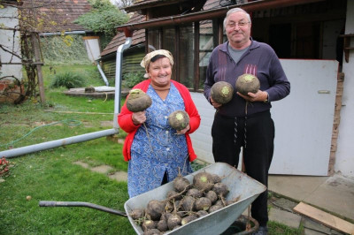 Jožef in Marica z obilnim pridelkom zdravilne črne redkve