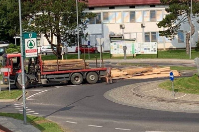 V krožišču nastala dodatna gneča, zaradi razsutega tovora